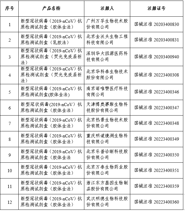 國家藥監局已批準的新冠病毒抗原檢測試劑